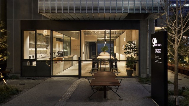 最上階はガラスのパノラマラウンジ。1Fは東京・神保町スペシャリティコーヒー「GLITCH」