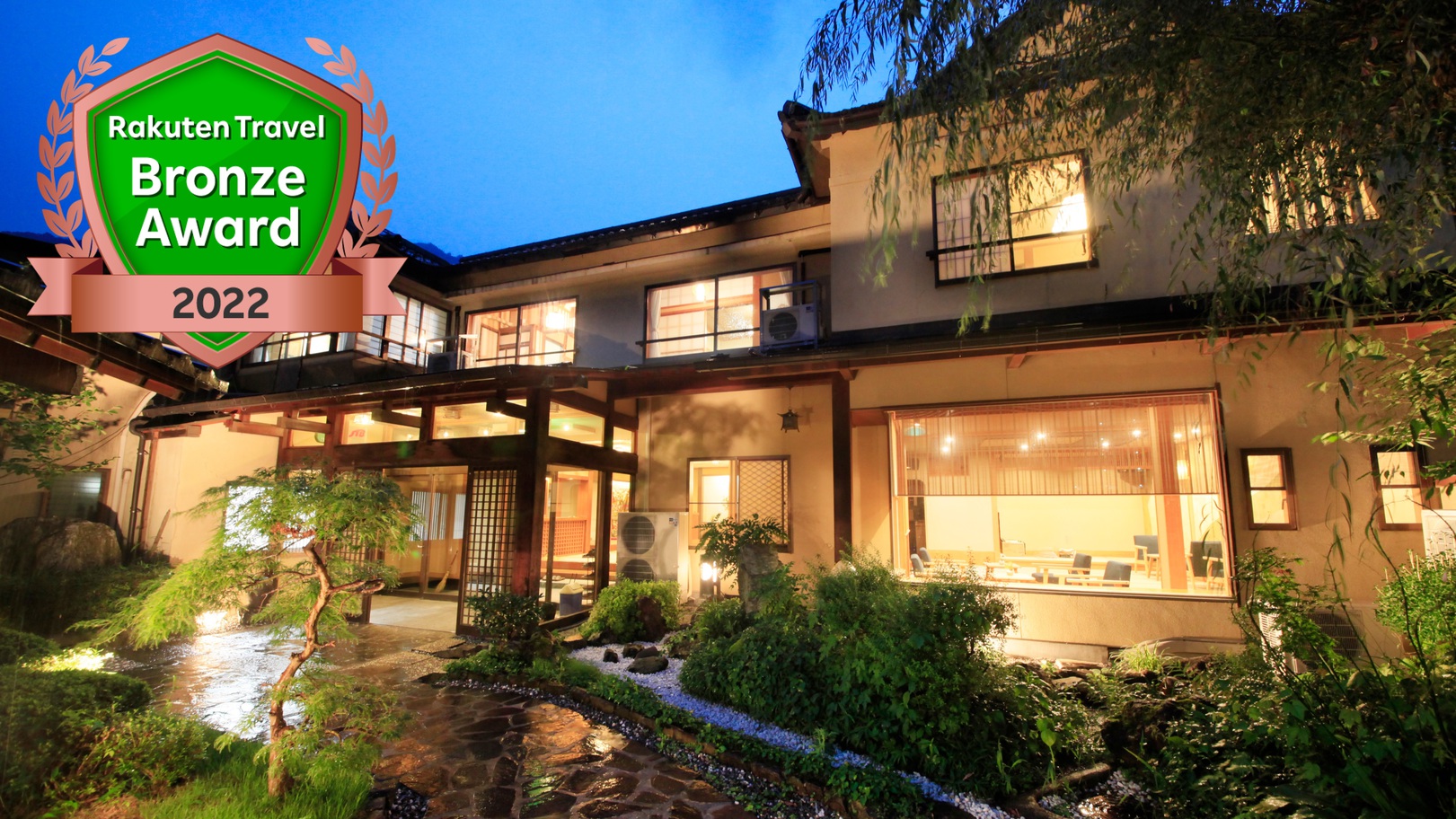 露天風呂付き客室と貸切風呂がご好評!里山の恵みをふんだんに用いた田舎料理をお楽しみいただけます。