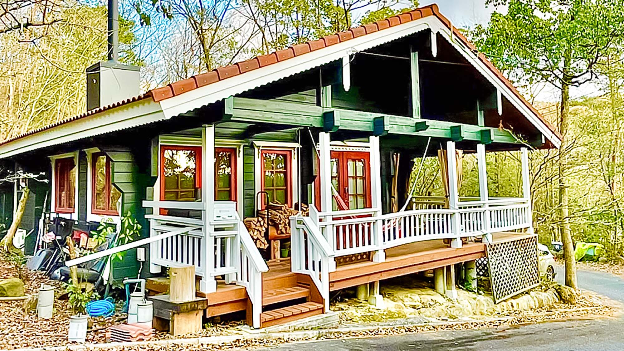 木々に囲まれたゆったり使えるログハウスで豊かな自然を体感しながら滞在。新たに露天ジャグジーを設置