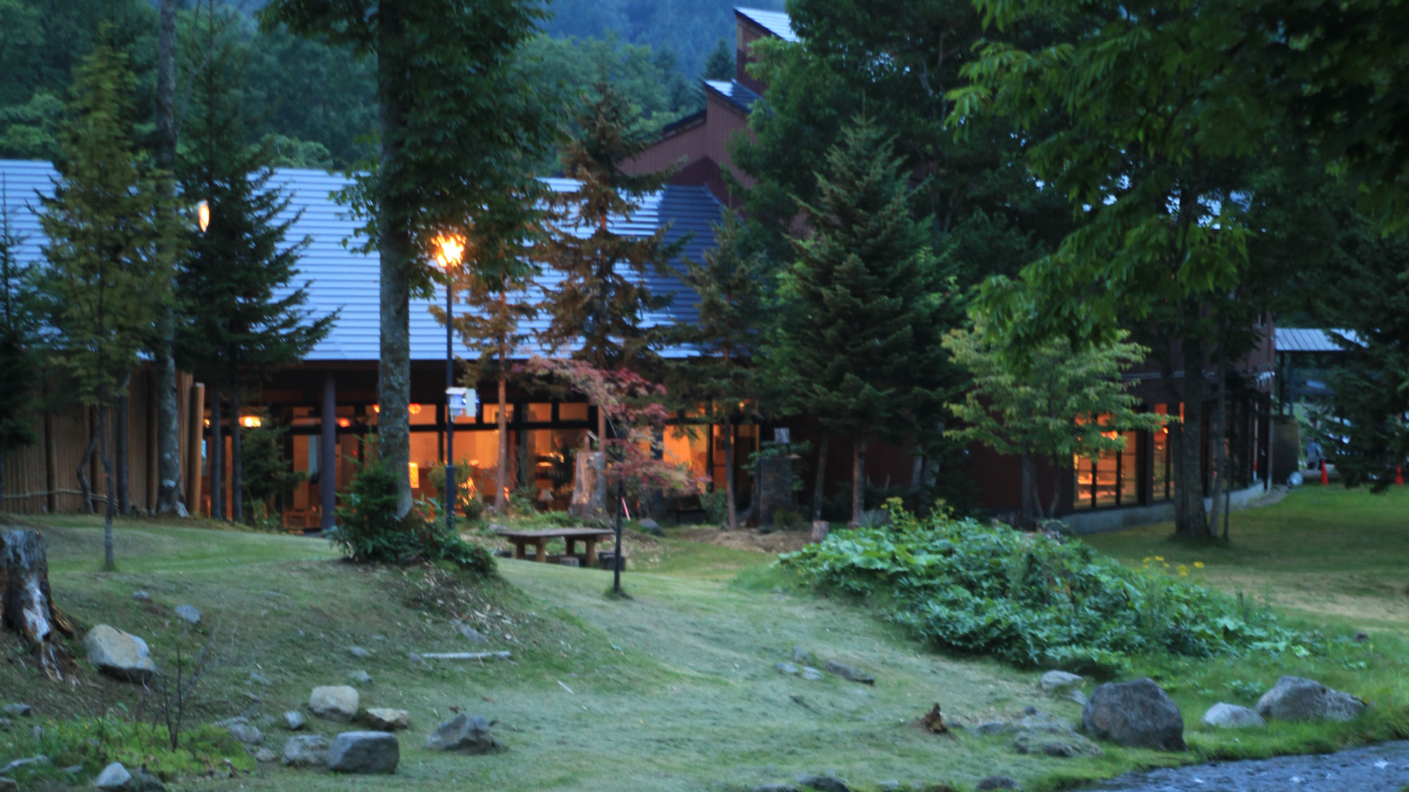 日常の喧騒から遠く離れた森の奥深く、静寂とランプの灯りに包まれながらゆったりとした時間が流れる一軒宿
