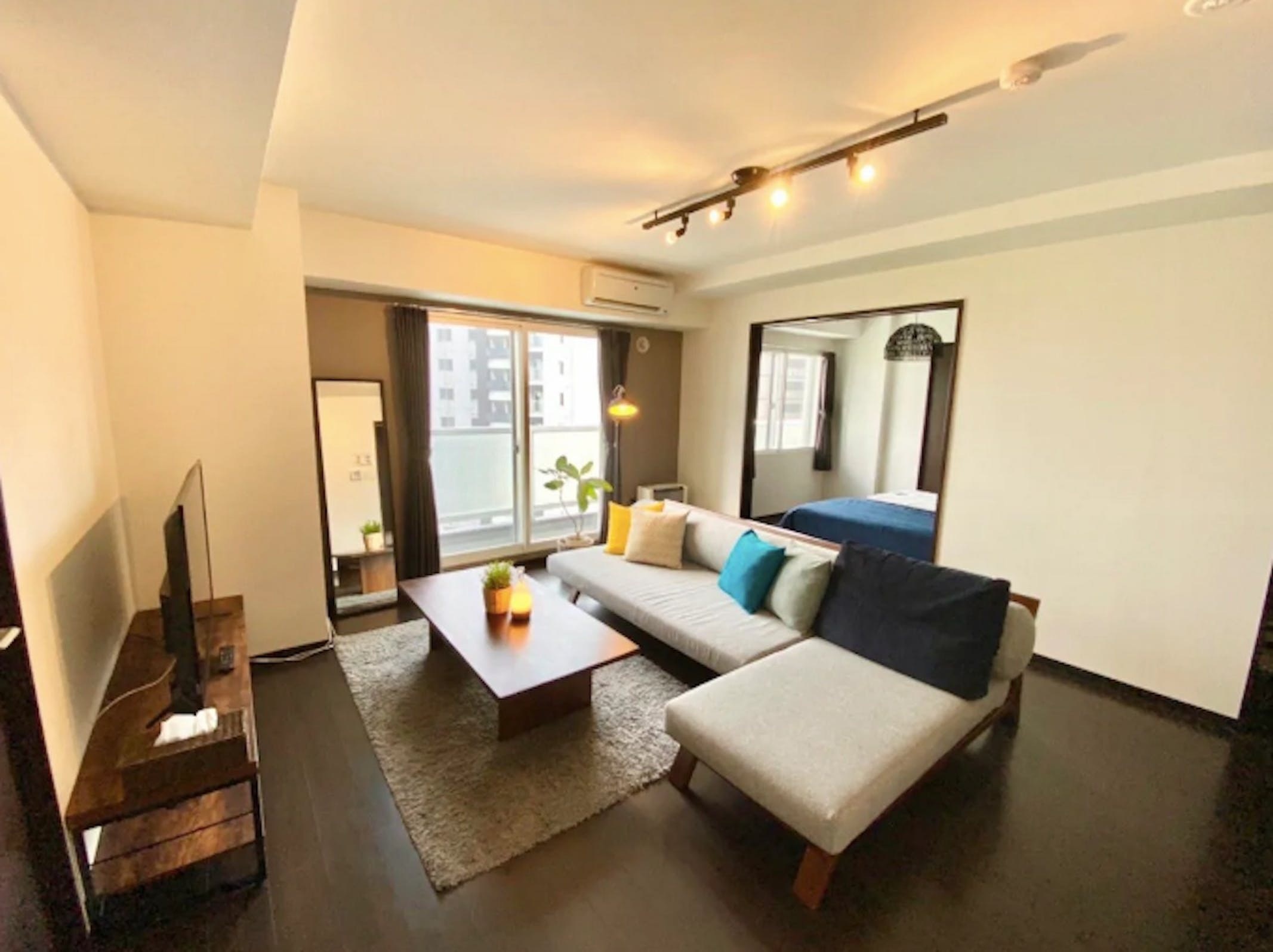 すすきのの繁華街と静かなリバーサイドの共存!!贅沢な大人の時間!!飲んで帰っても徒歩圏内【民泊】