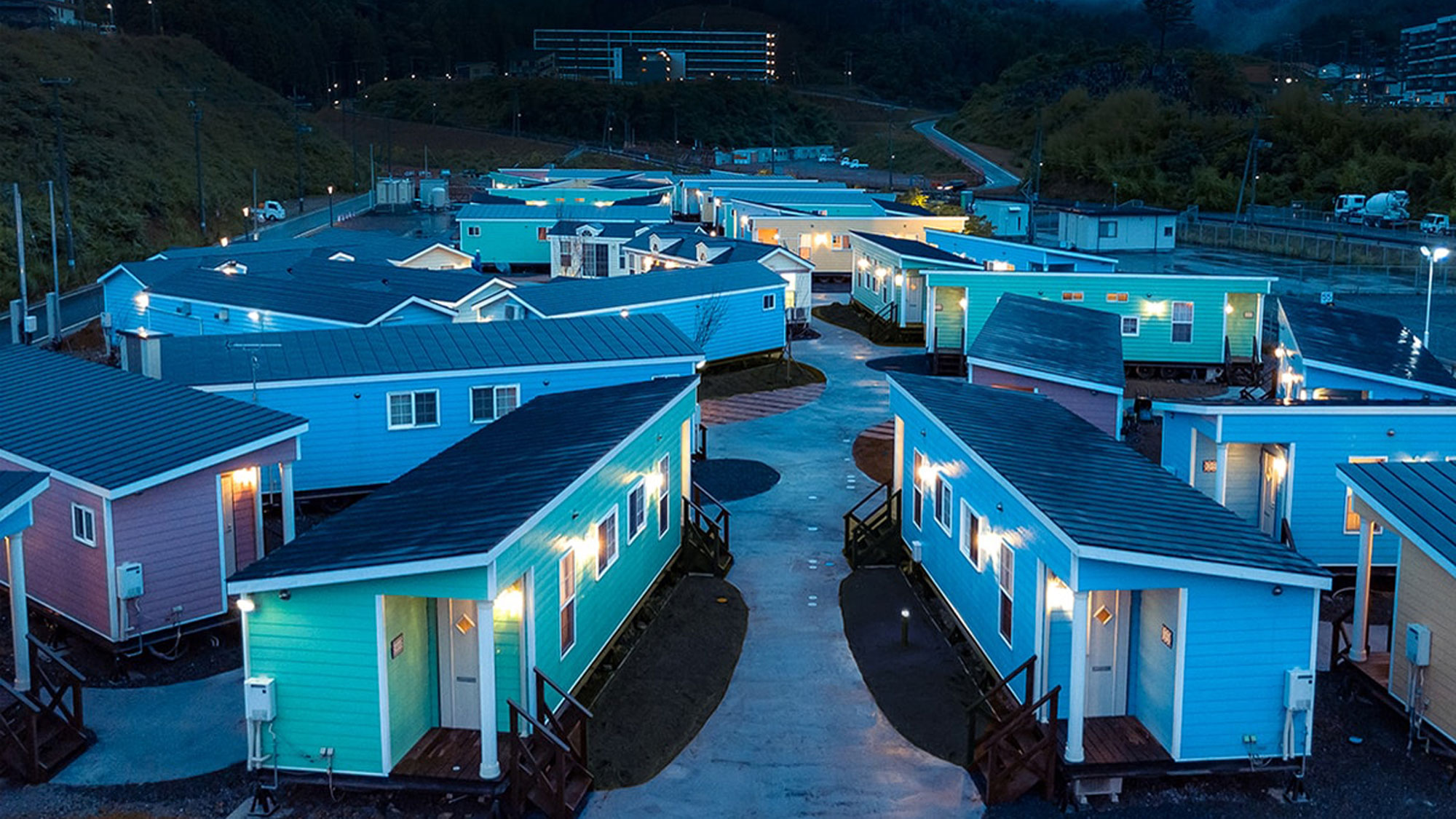 パステルカラーのトレーラーハウス♪国内初のトレーラーハウス台数40台、客室数65室のホテルです★☆