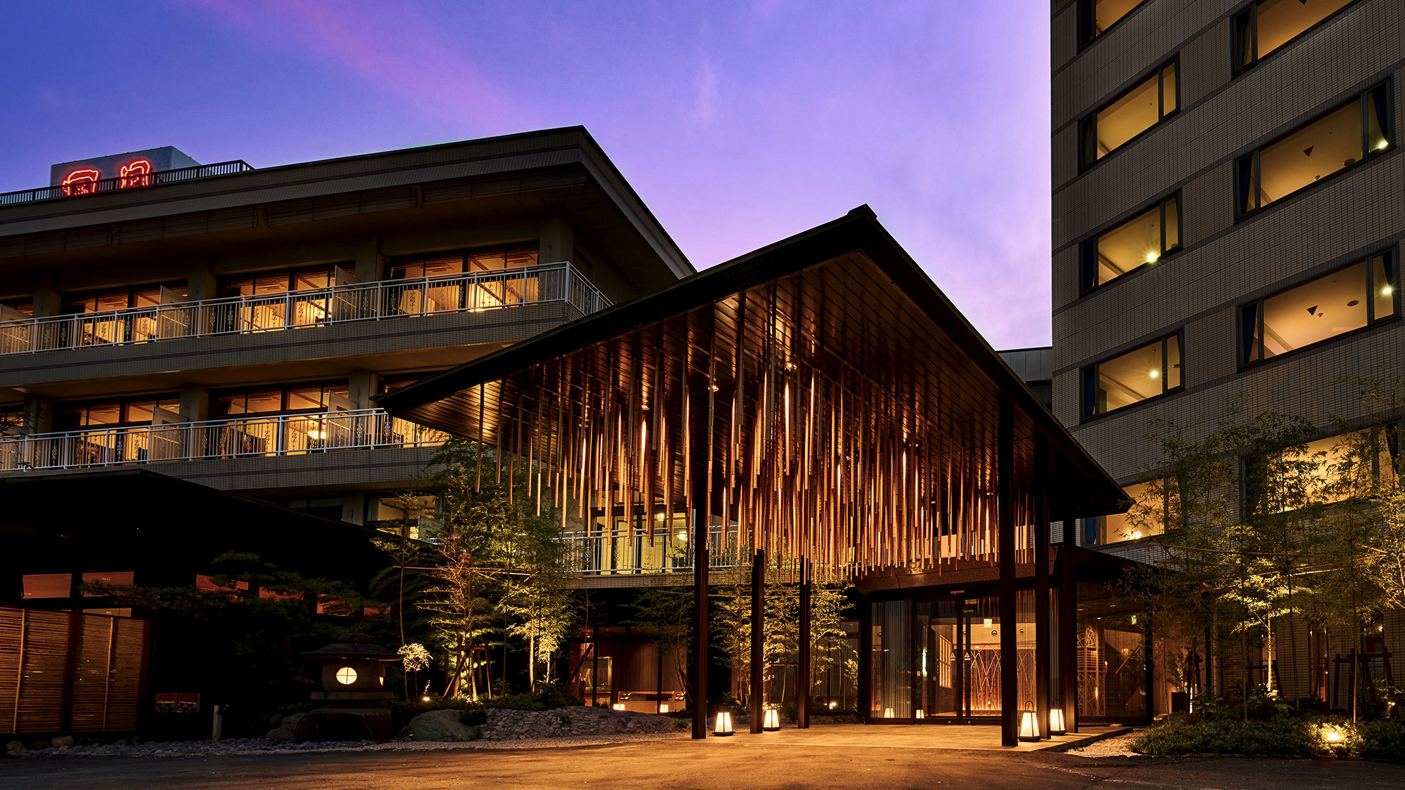 - 部屋設備・備品:テレビ , 電話 , インターネット接続(無線LAN形式) , 湯沸かしポット , お茶セット , 冷蔵庫 , ドライヤー , 個別空調 , 洗浄機付トイレ(一部) , 石鹸(固形) , ボディーソープ , リンスインシャンプー , シャンプー , リンス , くし , ブラシ , タオル , バスタオル , 浴衣 , スリッパ , 金庫 , ナイトウェア , スリッパ , リンスインシャンプー , ハミガキセット , カミソリ , シャワーキャップ , タオル , バスタオル , 浴衣 , スリッパ , 湯沸かしポット(貸出) , 金庫